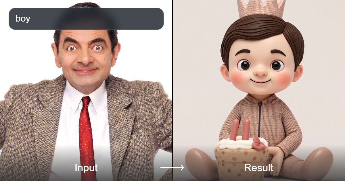 Master, Material generated image style featuring Lush hair, 3D villain, Jellycat style, Wear patterned clothes, Sitting on the floor, Birthday crown, Exquisite cake near the figure, Normal hands, smile, and cute.