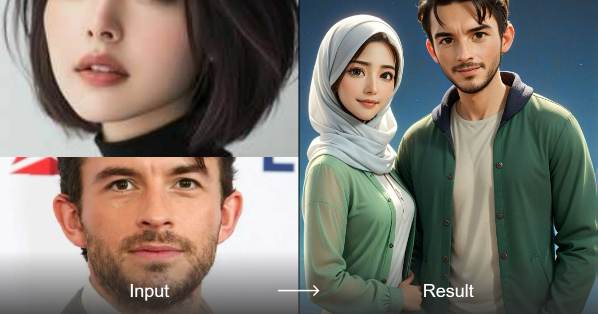 Generate cute 3D images of a couple with Hijab/Muslim style. Get your personalized image with 3D group photo, cute style, and hot IDN design.