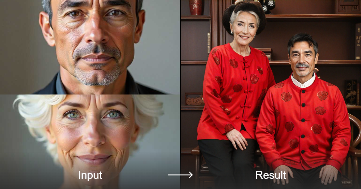 The Grandparents Wedding Photo Style Converter is an AI image generator that creates realistic and romantic photos of elderly couples. The photos are taken in a group setting and feature the couple dressed in traditional Chinese clothing. The output format is a high-quality image with a soft, warm color palette and gentle lighting.