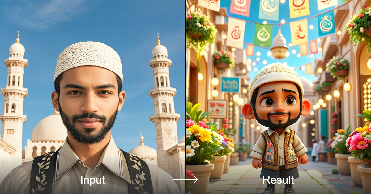 Generate 3D Cute Style images with Disney, frontal, sunlight, and warm atmosphere. Perfect for religious flags, flowers, greenery, and decorations.