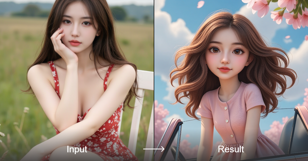 Create authentic and photo-realistic portraits with a romantic touch using the Pink Romantic Girl style converter.