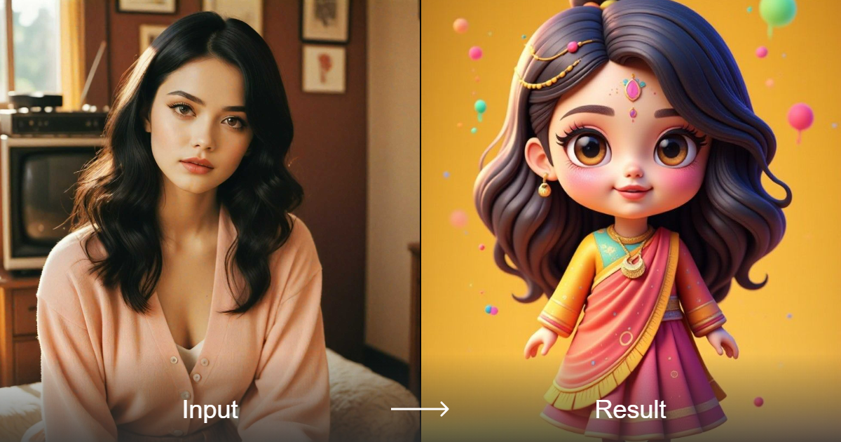 The 3D Sprinkles Girl style converter creates master, 3D, chibi, animation, 3D, design, cartoon scenes, cute, figure, candy style, game, doll, and blind box images.