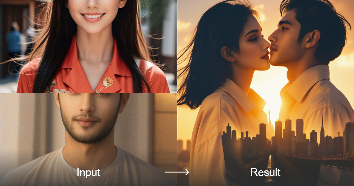 Double Exposure of Couple Kissing Photos | a1.art