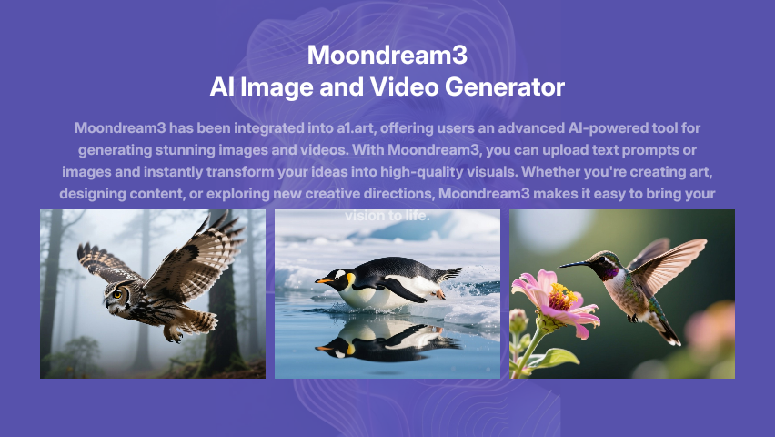 You can generate AI images or videos from text prompts or uploaded photos. It supports various styles, including portraits, landscapes, anime, and cinematic visuals.