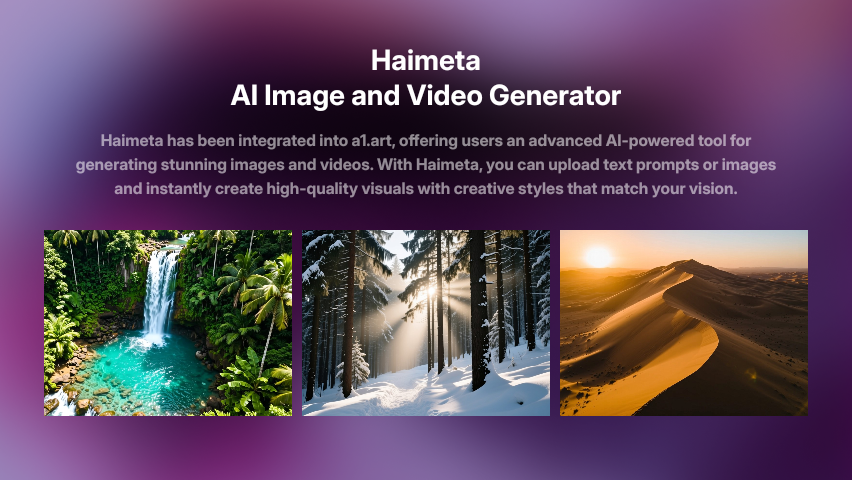 You can generate AI-powered images and videos from text prompts or uploaded photos. It works for portraits, landscapes, animations, and more.