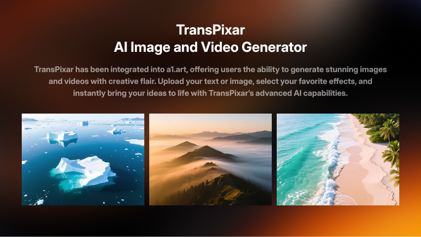You can generate AI-powered images and videos from text prompts or uploaded photos. It works for portraits, landscapes, anime art, cinematic visuals, and more.