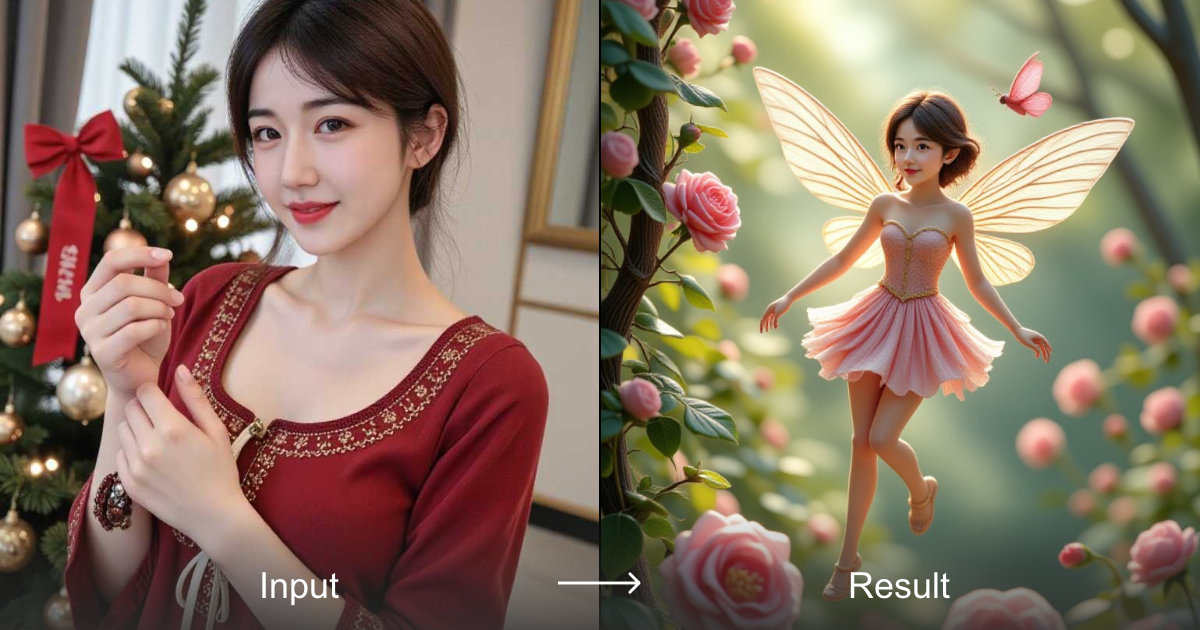 A1. Penukar Gaya Fairy Rose Art mengubah imej anda menjadi pemandangan impian yang memukau, menggabungkan butiran foto realistik dengan pesona ala mainan dan kesan miniatur, sesuai untuk mencipta karya model kecil yang comel.