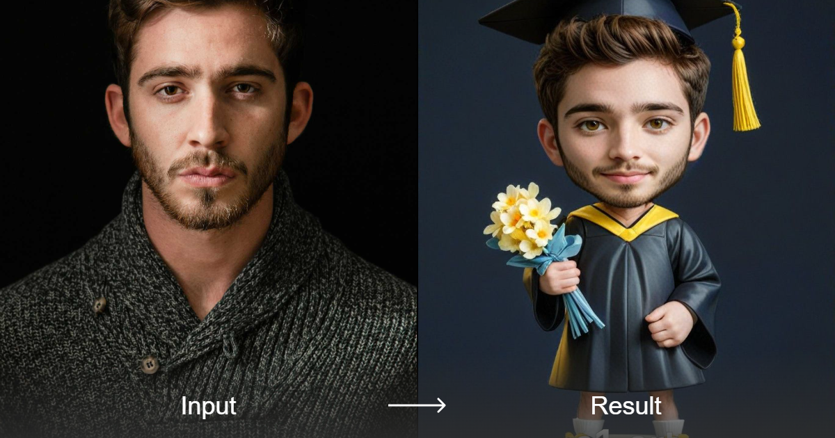 Tukar foto anda kepada pakaian kelulusan yang lucu secara segera dengan menggunakan penukar gaya foto dari a1.art.