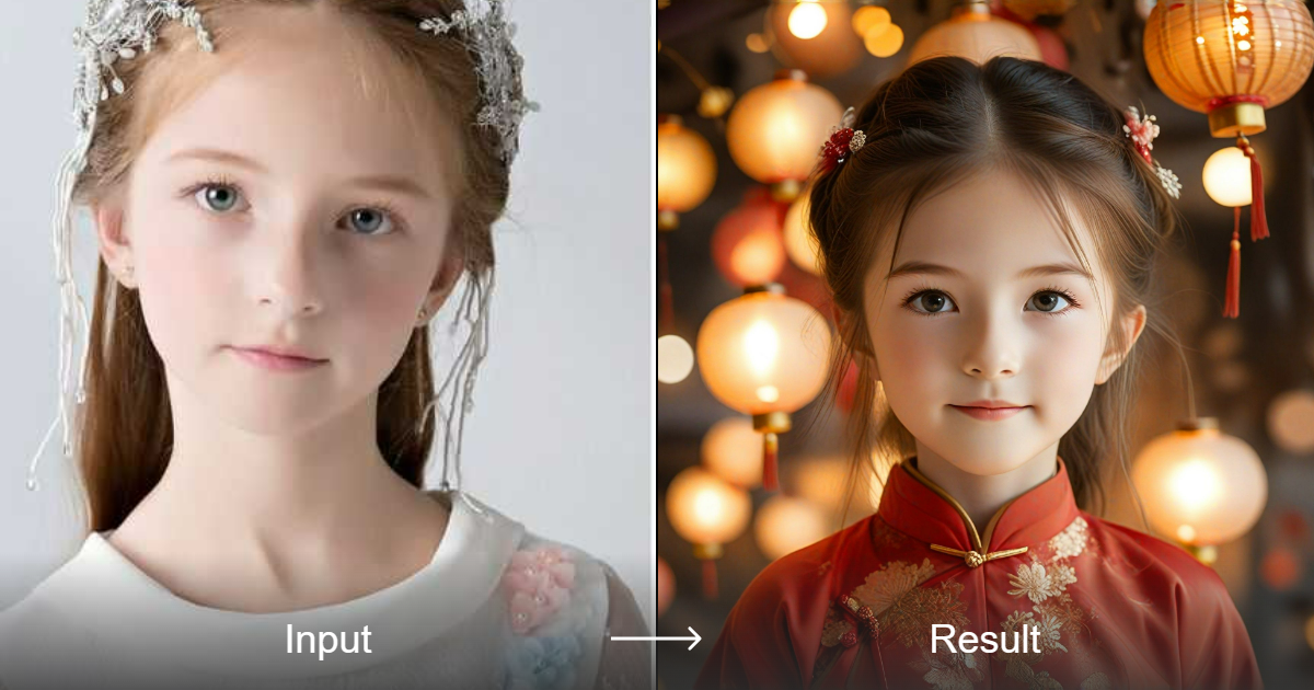 Generate a professional photo, portrait, or real-life photo of a cute little girl wearing a red Hanfu, with a Chinese New Year background and lanterns, using the Hanfu Girl Avatar style converter. The output format is a high-definition, high-resolution image, perfect for personal or commercial use.