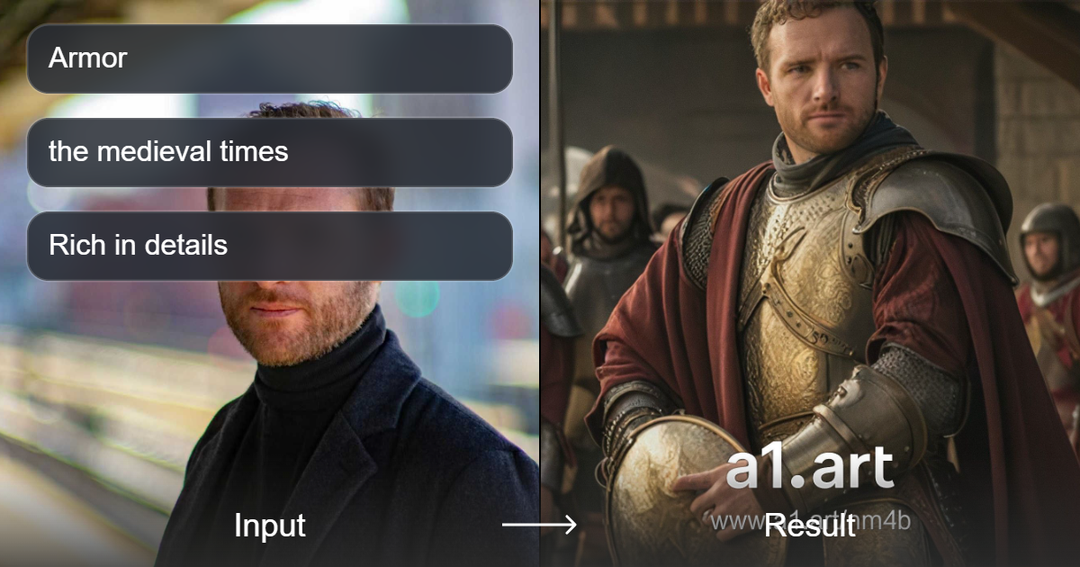 Instantly convert your modern pictures to stunning medieval warrior scenes with a1.art's photo style converter.
