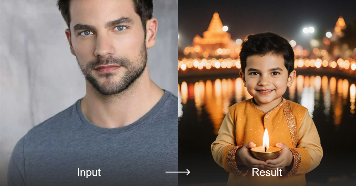 Transform your photos into vibrant, traditional Indian art with A1.Art's Diwali Baby - p1 style converter.