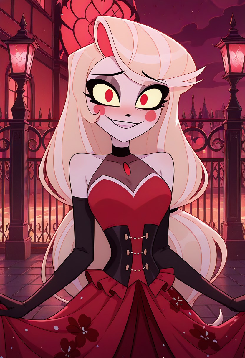 Generate visuals inspired by the iconic Hazbin Hotel universe, capturing its unique art style and characters.