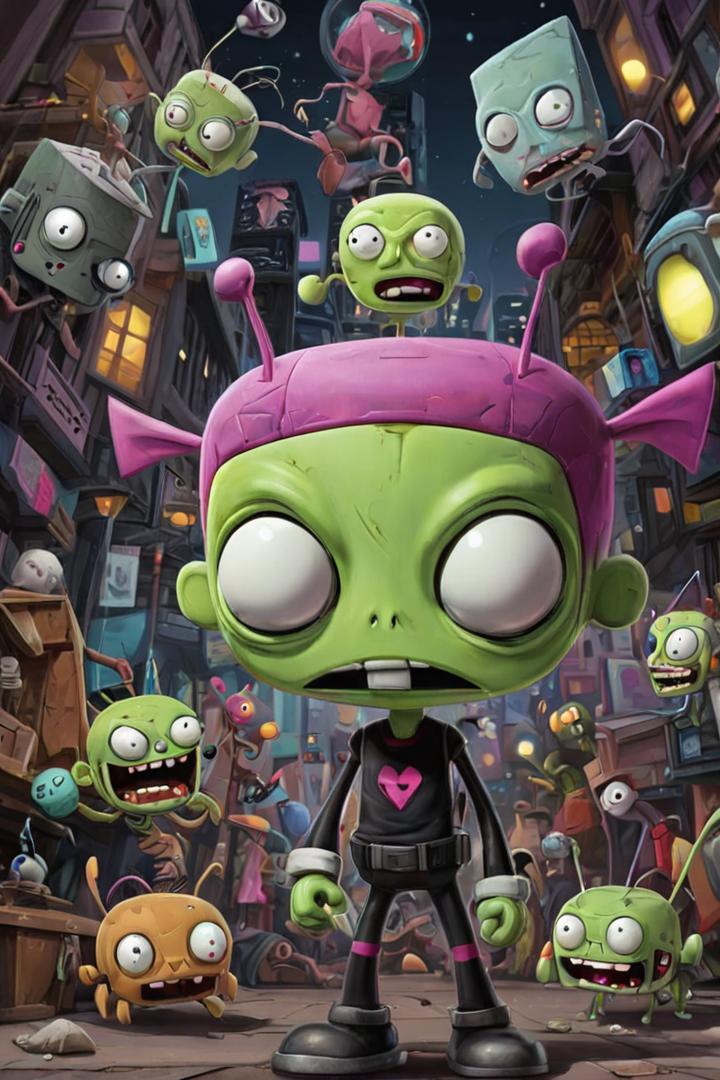 AI prompts to generate Invader Zim images and videos using Invader Zim OC Maker.
