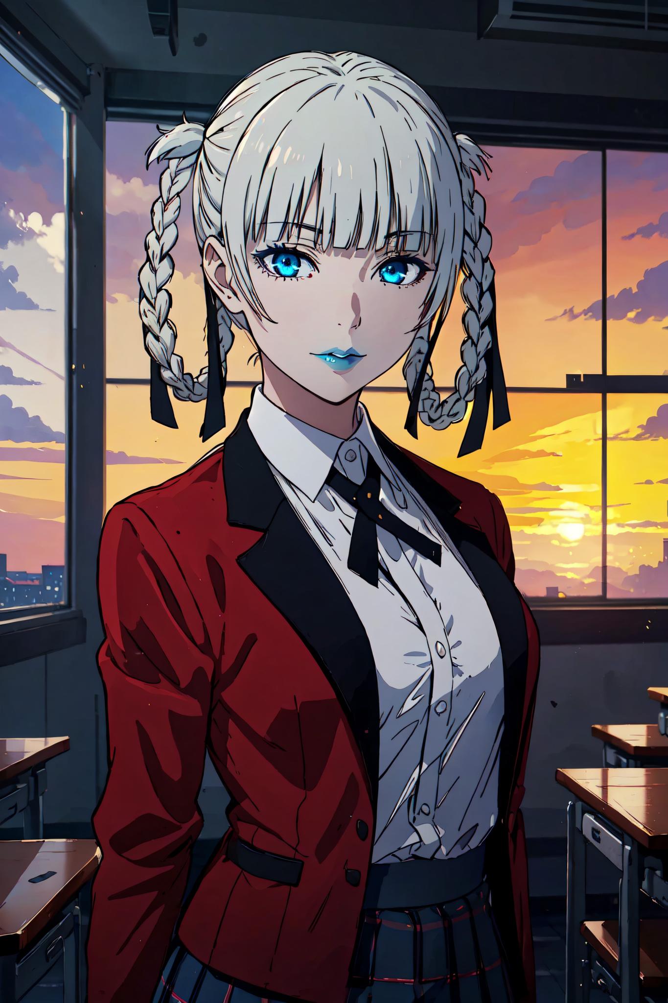 AI prompts to generate Kakegurui images and videos using Kakegurui OC Maker.