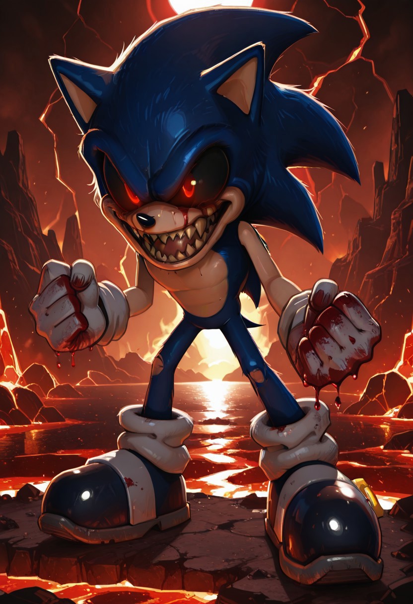 AI prompts to generate Sonic.exe images and videos using Sonic.exe OC Maker.
