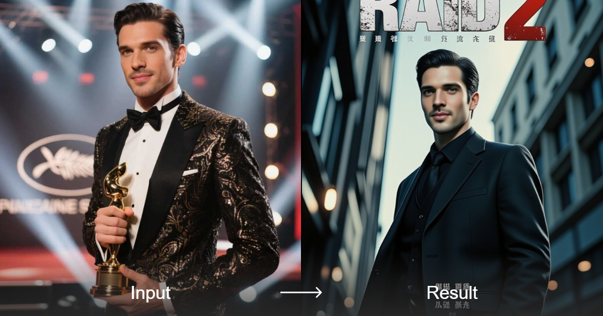 Transform yourself into the male lead of RAID2 02 with our realistic portrait generator featuring a polaroid camera effect. Experience the artistry and consistency of movie stills directly on your image.
