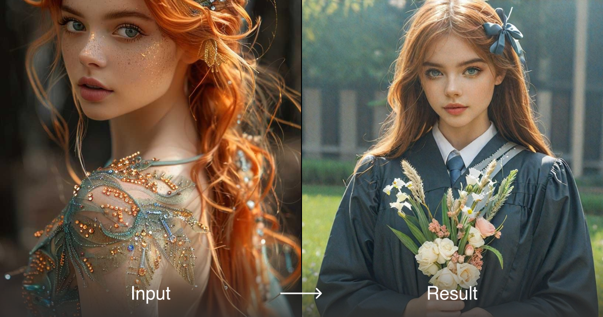 Seamlessly convert your photos to enchanting fantasy or formal graduation styles with a1.art's advanced image converter.