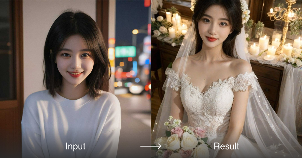 Transform your photo from casual to stunning wedding attire effortlessly with a1.art. Create memories with gorgeous bridal looks in seconds.