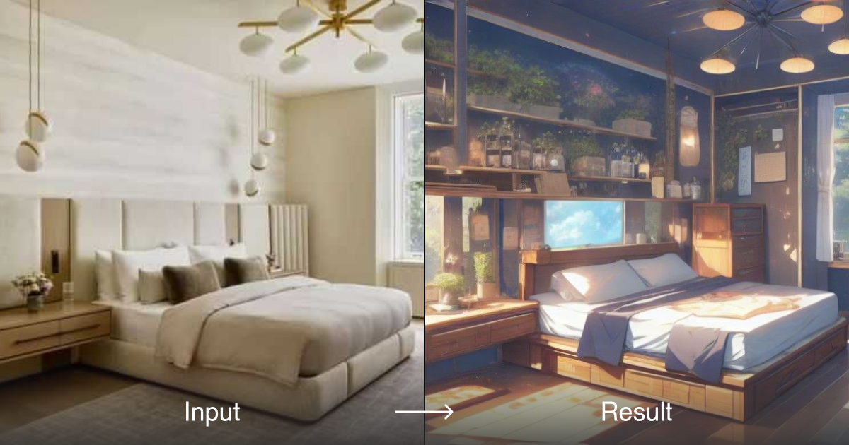 Easily transform your bedroom photo to a stunning Studio Ghibli-inspired scene with a1.art. Embrace a magical transformation in just a few clicks.