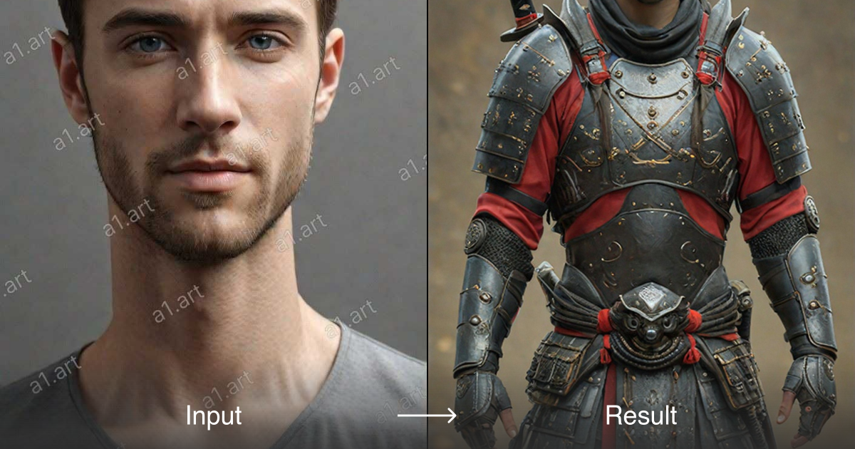 Convert your clothes to stunning Japanese warrior armor with a1.art's converter in seconds.