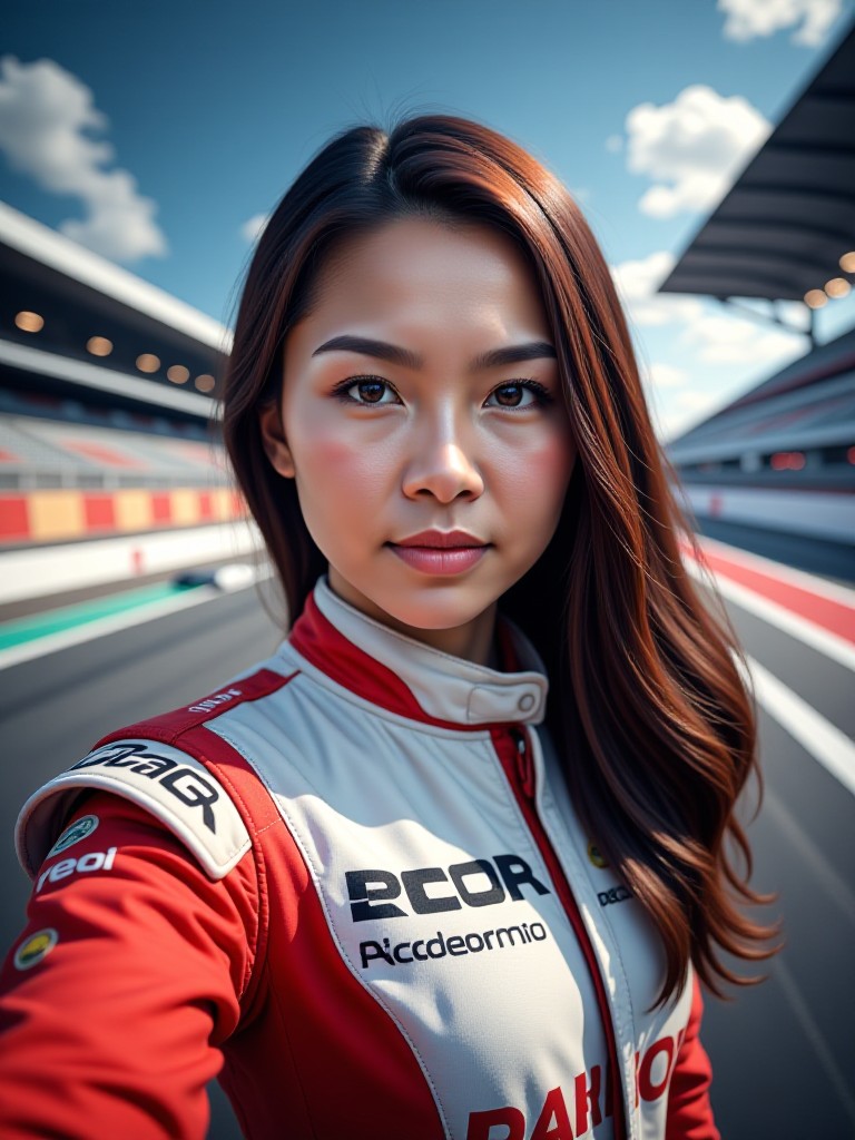 Enhance your selfies with dynamic racetrack art, preserving your features while adding a thrilling racing environment.