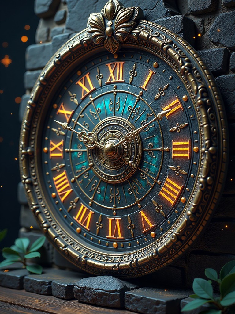 Transform your images into enchanting ancient clocks with glowing runes, stone carvings, and mystical light effects, perfect for fantasy and historical art.