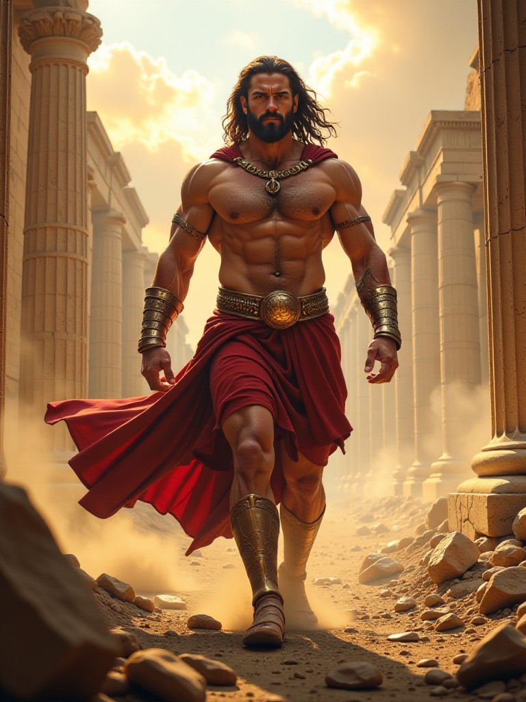 Transform basic models into cinematic mythological heroes with realistic, adaptable, and photorealistic images on ancient Greek battlefields.