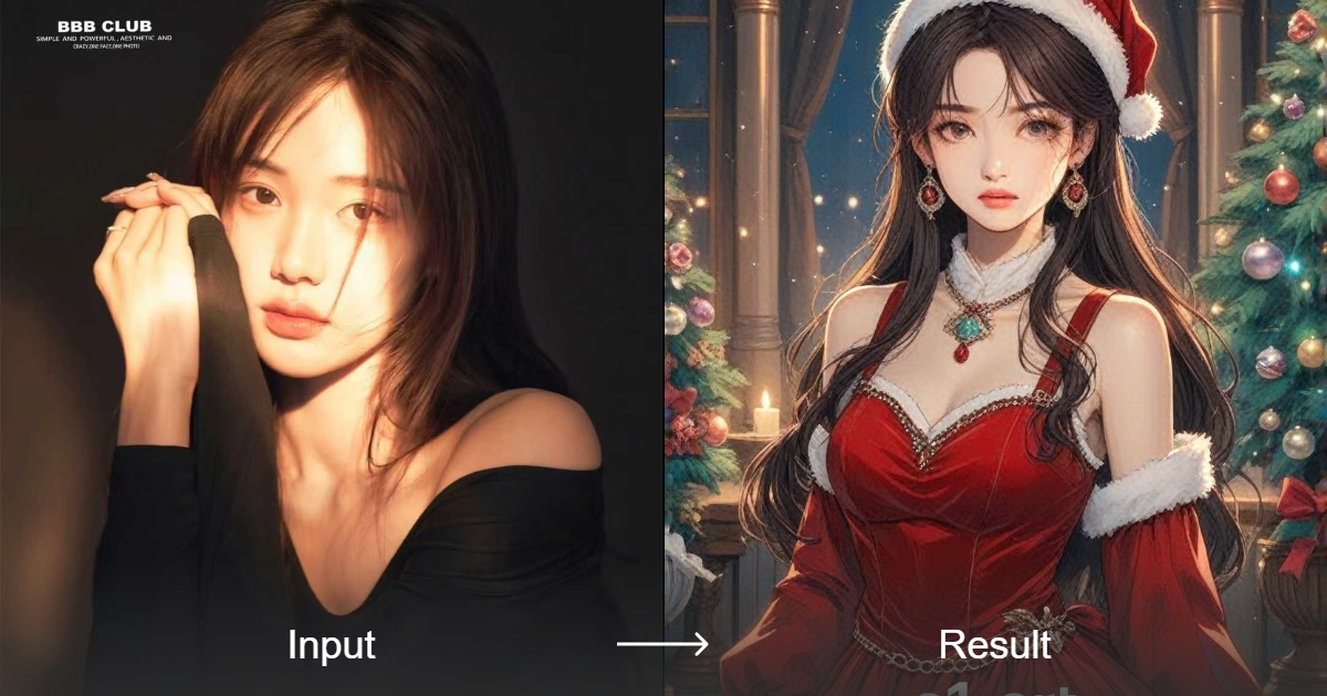 O conversor de estilo de fotos de estilo de Natal gera imagens impressionantes nos estilos anime e pintura, perfeitas para qualquer conteúdo festivo ou sazonal.