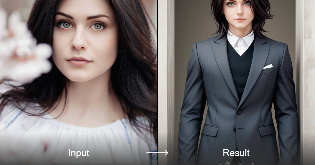 Gere pinturas no estilo anime com você de terno.