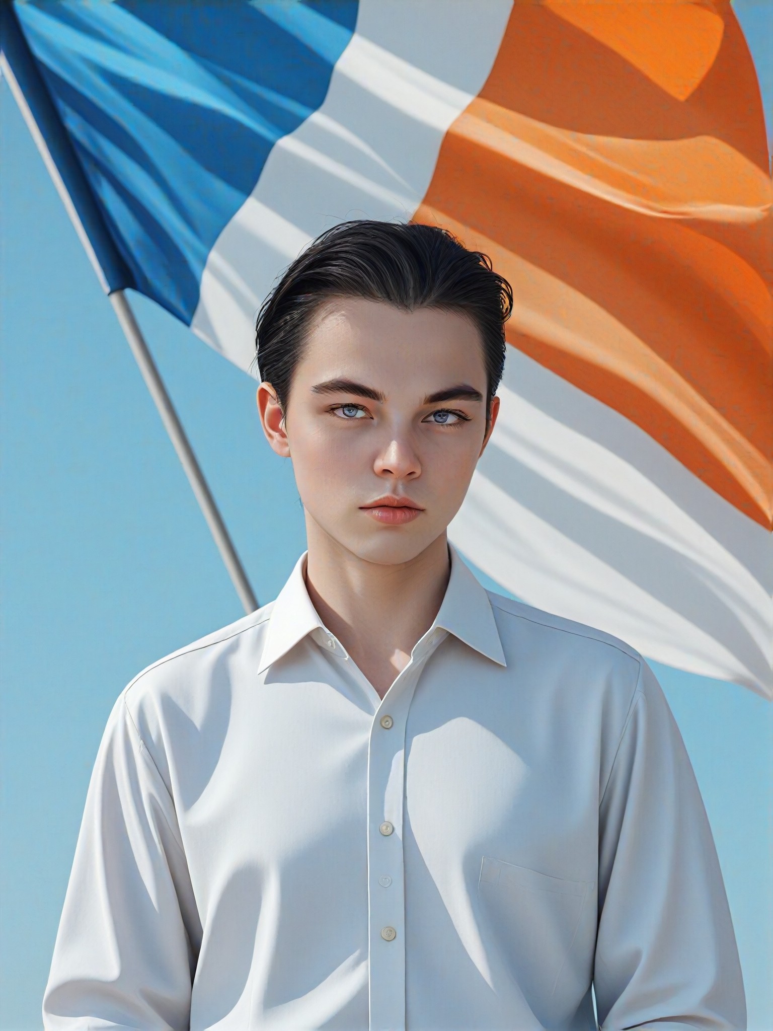 Este conversor de estilo adiciona uma enorme bandeira azul, laranja e branca às costas da figura, criando uma ilustração ou pintura digital impressionante e memorável. Perfeito para adicionar um toque de empolgação ou patriotismo a qualquer foto.