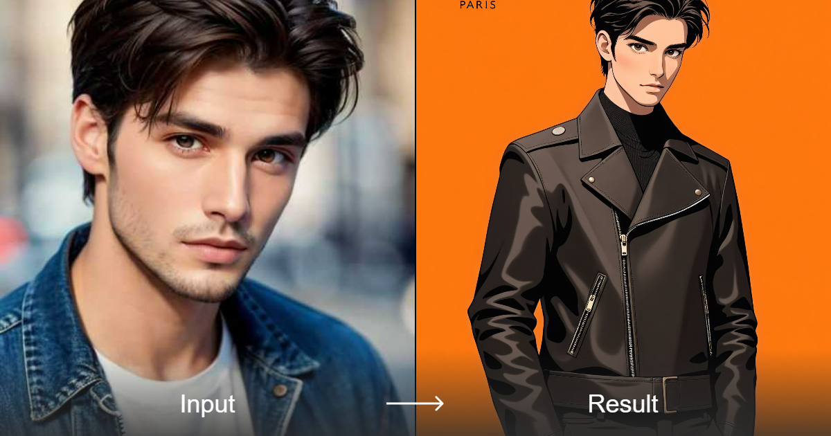 Conversor de Estilo de Jaqueta de Couro Biker da Hermès: Ilustração Digital, Minimalista, Retrato Plano, Pintura Digital, Paleta de Cores Profissional | a1.art