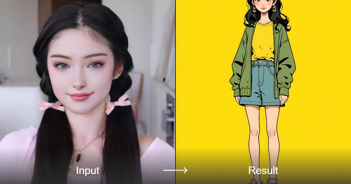 Transform your ideas into stunning anime-style character illustrations with bold lines, solid colors, and minimalist details.