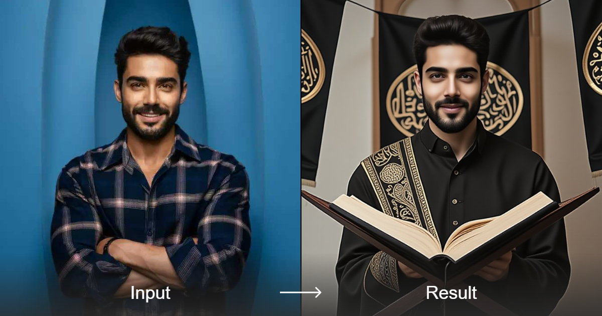 Transform your ideas into breathtakingly realistic portraits capturing the essence of Muharram Festival, featuring compassionate, forgiving, prayerful moments, and the cultural attire of the event.
