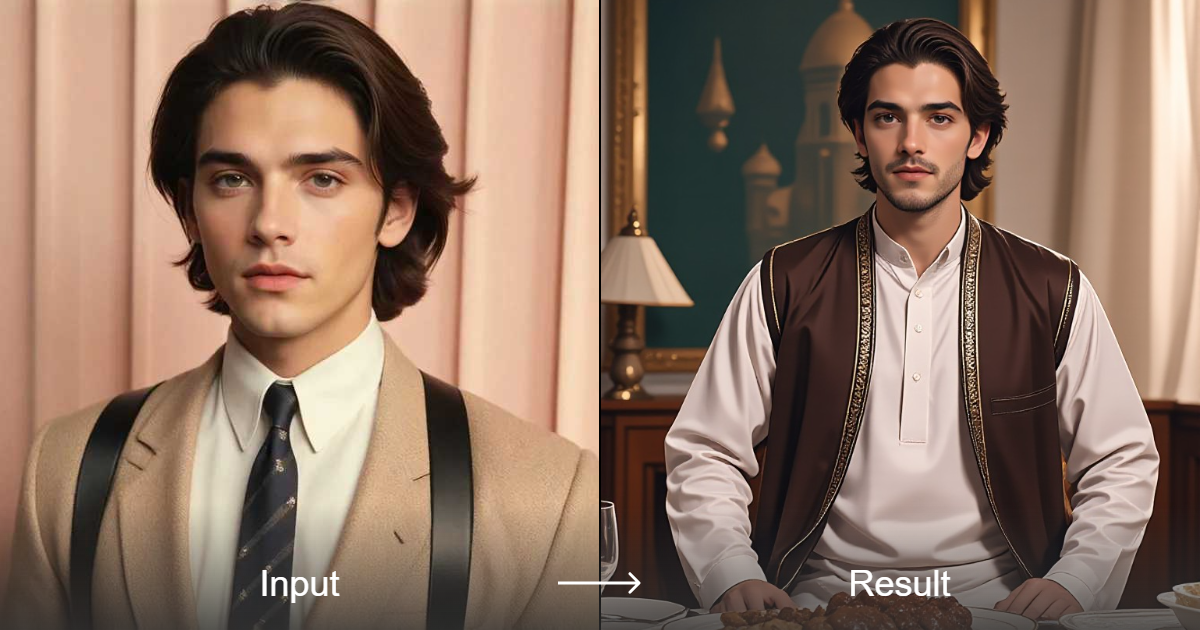 Experience the vivid charm of Y2K aesthetics in this Eid al-Adha man portrait, featuring digital painting techniques and game character-inspired artwork.