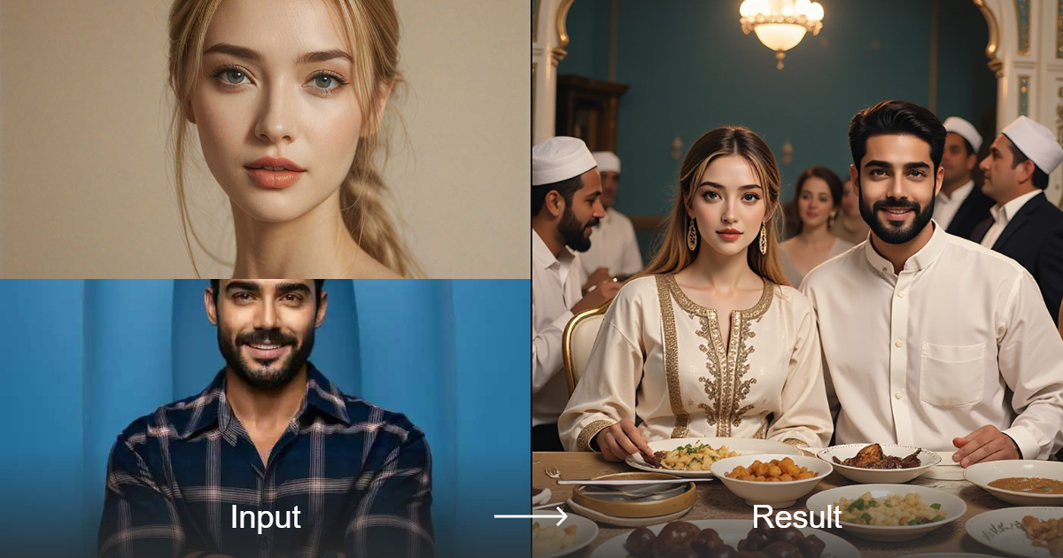 Transform your memories into stunning, digital art with our vibrant, customizable Eid al-Adha couple photo generator.