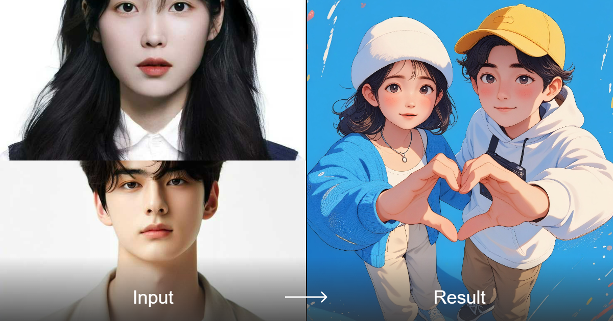 Generate unique group photos in anime character, animation, Japanese comics, and niji journey styles with vibrant colors and a playful vibe.