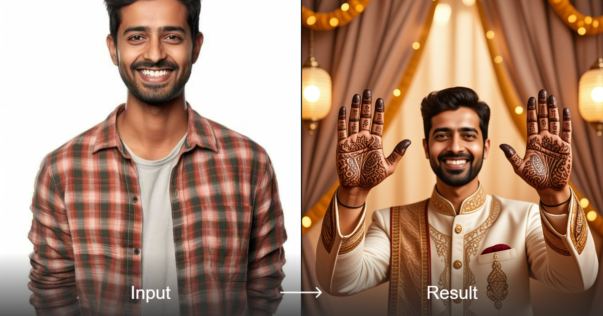 A1.Art's The Groom's Mehndi Style Converter: Realistic Indian Wedding Portrait | a1.art