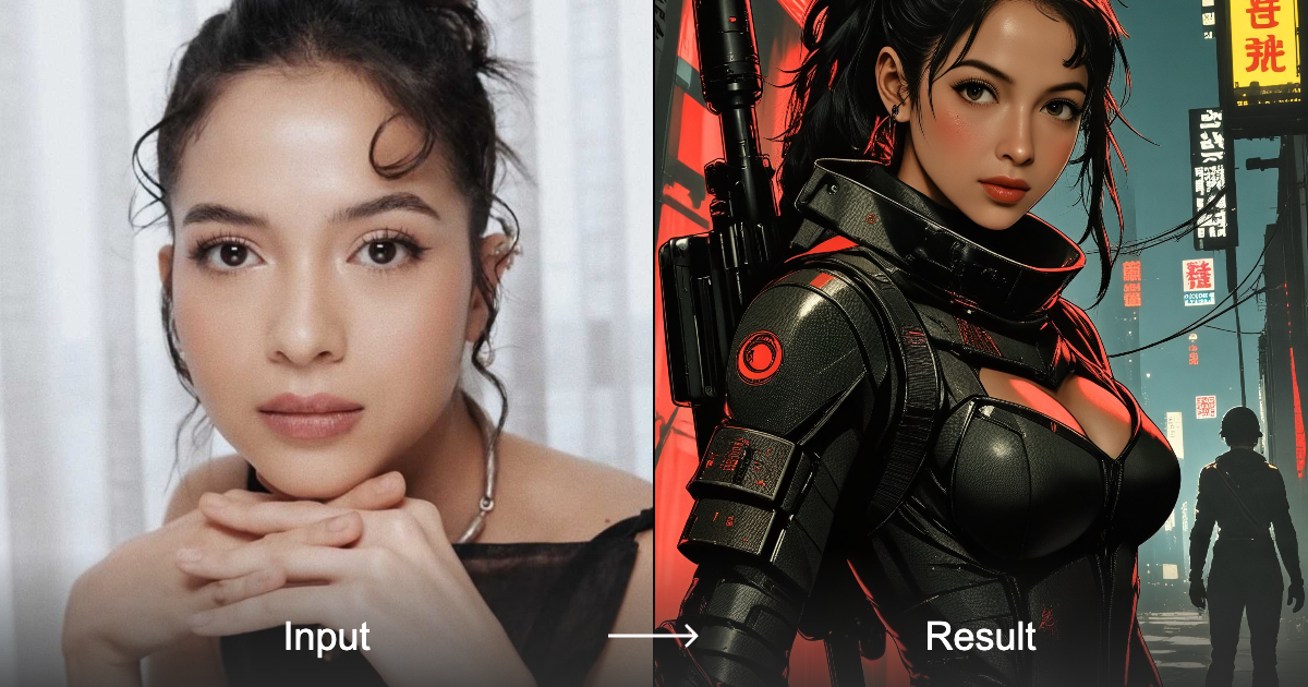 AI Art Style Converter: Cyberpunk City Female Bounty Hunter | a1.art
