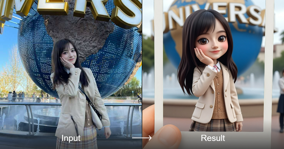 Transform your photos into adorable, hyper-realistic, CG-styled images that capture the charm of a tourist's journey.