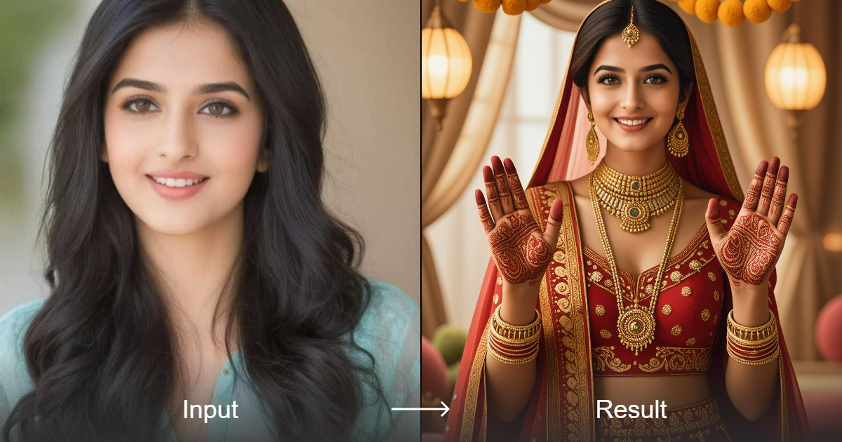 Transform your images into stunning, detailed bridal mehndi art using A1.Art's advanced style converter.
