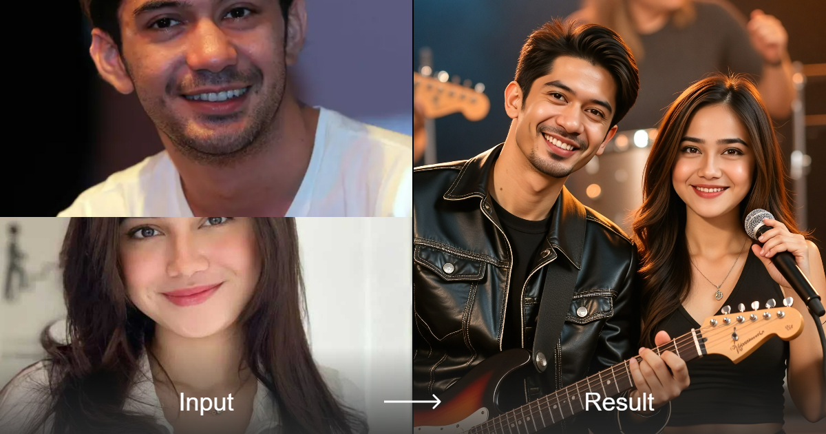 Transform your group photos into professional, realistic, and captivating portraits featuring a young band performing on stage.