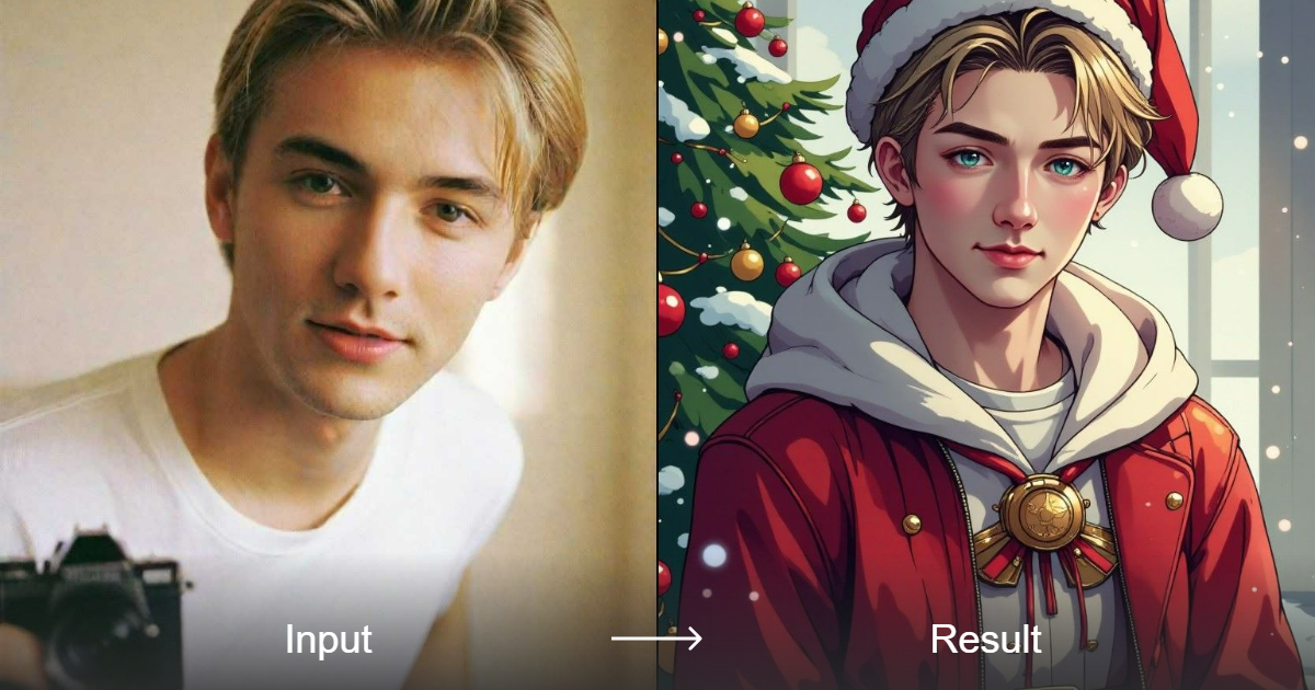 Легко преобразуйте ваше фото в впечатляющий праздничный аниме стиль с помощью a1.art. Опыт магического преображения за секунды.