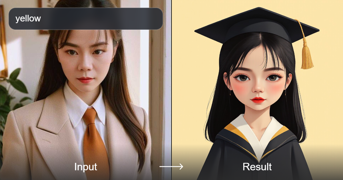 Преобразователь стиля A1.Art "Памятный выпускной" превращает ваши изображения в уникальные воспоминания о выпуске в стиле персонажей, анимации, высокой насыщенности, плоских цветов, искусства, портретов, цифровой живописи, иллюстраций и стилей мастеров.