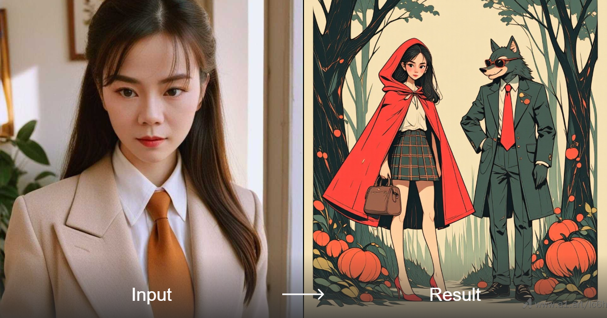 Transform your ideas into anime-style girl characters inspired by Japanese comics, featuring the classic "Little Red Riding Hood" story with a modern twist.