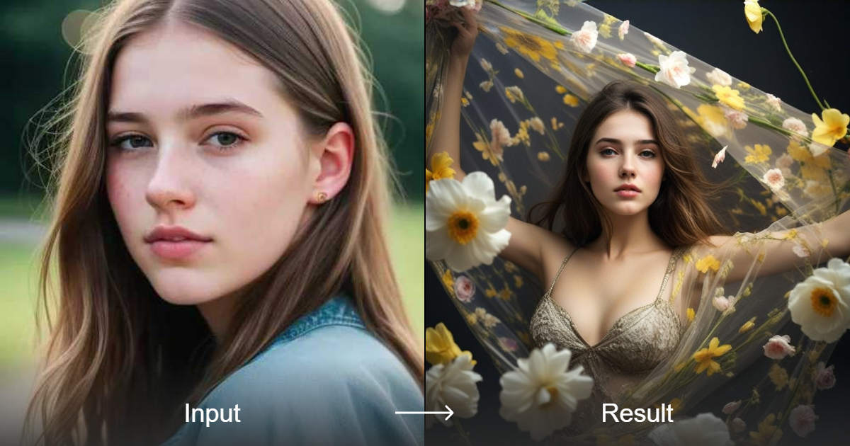 Преобразуйте свои фотографии в профессиональные реалистичные портреты с помощью передового стиля Flower Style P34 от A1.Art. Оцените высококачественную генерацию изображений с плавным сочетанием реалистичных и портретных стилей фотографии.