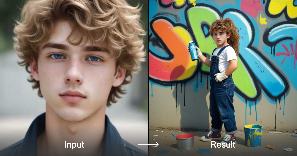 Создавайте реалистичные, профессиональные фотографии, ретро и фотографические изображения с помощью этого конвертера стиля "Девять - Реальные люди - Детский повседневный - Цветной граффити". Составленный из различных стилевых компонентов, этот конвертер позволяет создавать уникальные и персонализированные изображения.