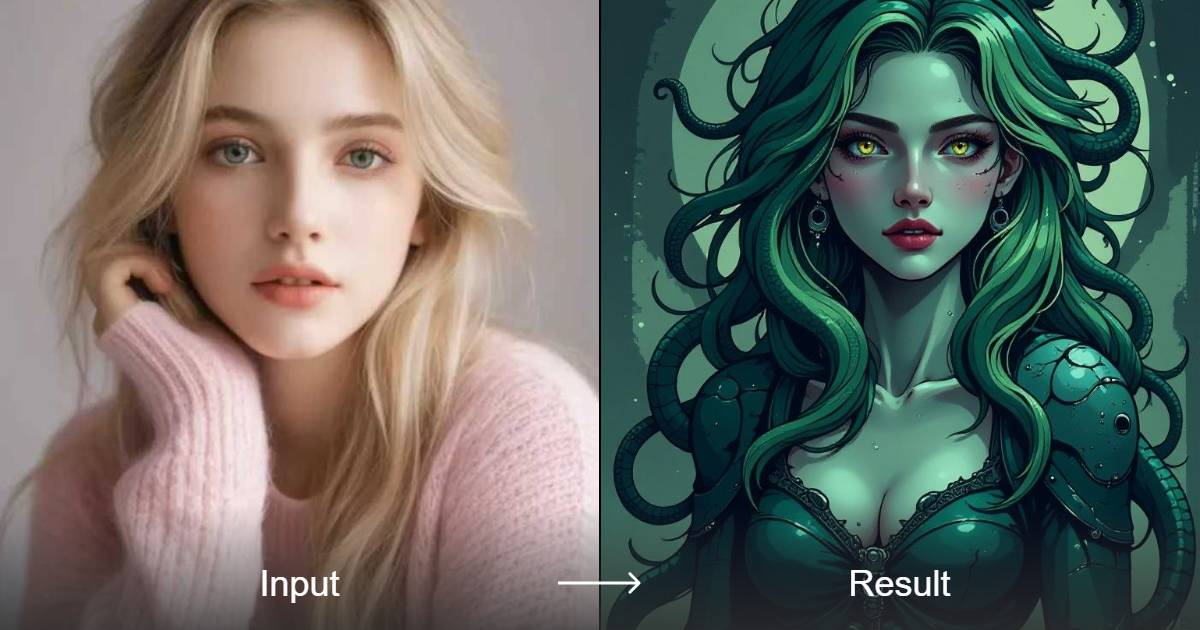 Создавайте мощные и устрашающие образы Медузы с помощью нашего конвертера стилей AI. От живописи, шедевров, аниме до портретов – этот конвертер стилей имеет все. Ощутите древнее проклятие и дайте волю своему воображению.