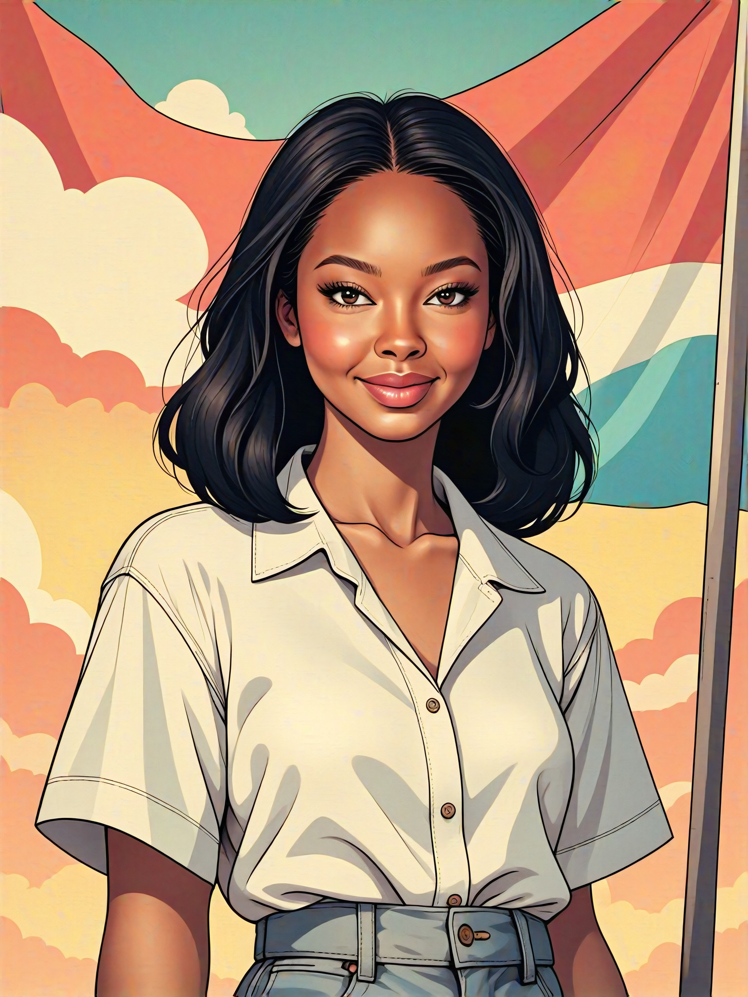 Конвертер стилей, который добавляет агендерный флаг к фотографиям, создавая изображения в различных стилях, таких как CG 1.0, Мастер, CG 2.0, Анимация, Цифровая живопись и Иллюстрация. Пример выходного формата включает человека в белой рубашке с огромным агендерным флагом за его спиной.