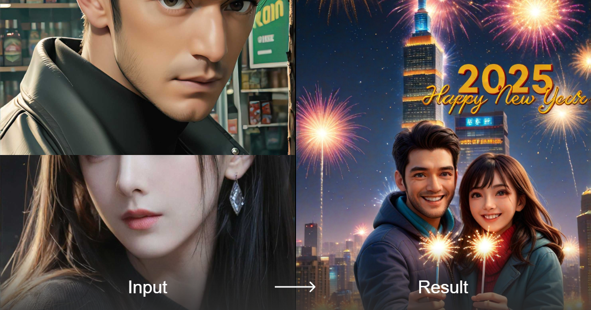 Get the best group photo ideas with our Realism, Cute, 3D, and Festival styles for the 2025 New Year celebration in Taipei 101.