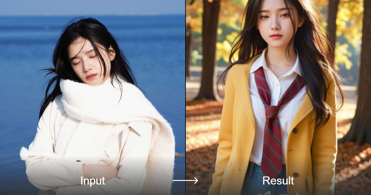 Generate Realism, Professional, Photography, ID, and Portraiture images of the girl in autumn park with the style converter.